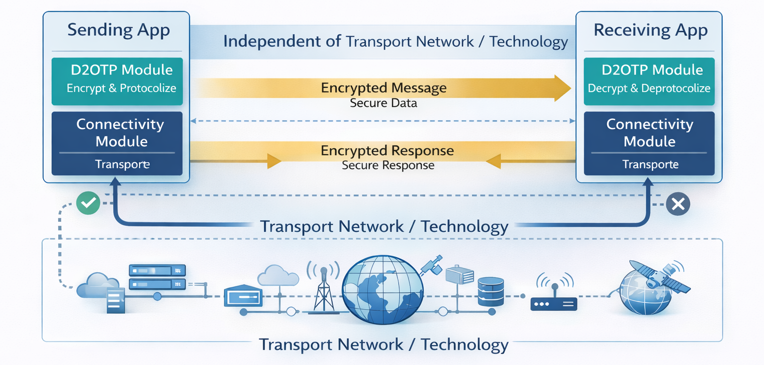 El protocolo D2OTP, gracias a esta forma de operar, garantiza la seguridad de las comunicaciones de extremo a extremo, desde la aplicación emisora hasta la aplicación destinataria, sin depender de las características tecnológicas de la red utilizada para su transporte. Esto lo convierte en una “solución eficaz contra gran parte de los ciberataques que sufren las organizaciones que necesitan usar redes vulnerables para ejercer su actividad, logrando evitar las pérdidas económicas y reputacionales que conllevan".
