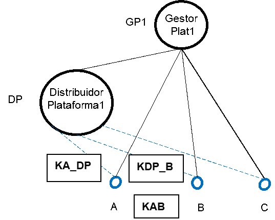 Entre las funciones del Gestor destaca la distribución segura de la clave inicial exclusiva de cada pareja de Apps. Para ello, previamente el Gestor comparte otra clave secreta con cada App de la Red en estrella. Para la distribución segura de estas claves entre el Gestor y sus Apps es aconsejable hacer uso de la huella digital única de un dispositivo electrónico, sistemas PUF, y un Mecanismo de Encapsulamiento de Claves (KEM). El procedimiento a seguir para esta distribución segura de claves dependerá fundamentalmente de las capacidades y características de las Apps que componen la red y cómo se gestiona su incorporación a la red, es decir dependerá de cada implementación. En el mercado existen ya, conocidos y probados, procedimientos que ejecutan de forma segura esta distribución de claves a compartir, incluidos los procedimientos usados por los propios fabricantes de los dispositivos que van a componer una red.